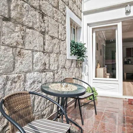 Les équipements de cuisine de la villa comprennent une cafétière/théière électrique, un réfrigérateur et de la vaisselle, fournis dans un coin repas extérieur.